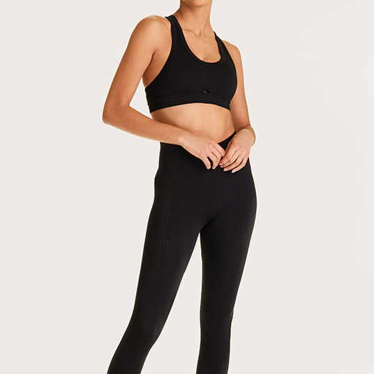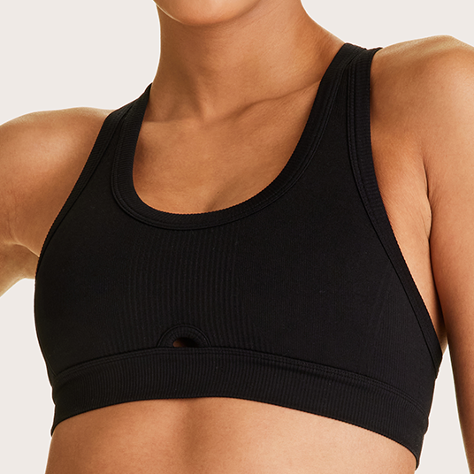 We've taken seamless bras to a new level. Introducing the Barre Racer Bra, the newest addition to our Seamless collection, featuring a keyhole opening in front and a racerback neckline to create a medium support black seamless sports bra.